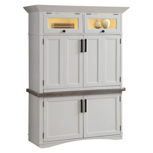 Whether you're working from home or just need a place to organize crafts and paperwork, this Americana Modern Workstation with LED Light is sure to be a favorite. Packed with functionality, it features a pull-out tray for an extended work surface, energy-efficient LED lighting on a dimmer, generous storage and dual AC and USB outlets - all in a fashionable cotton white finish with contrasting wood-grain accents. When you're done, just close its doors to keep papers and clutters hidden from sight.