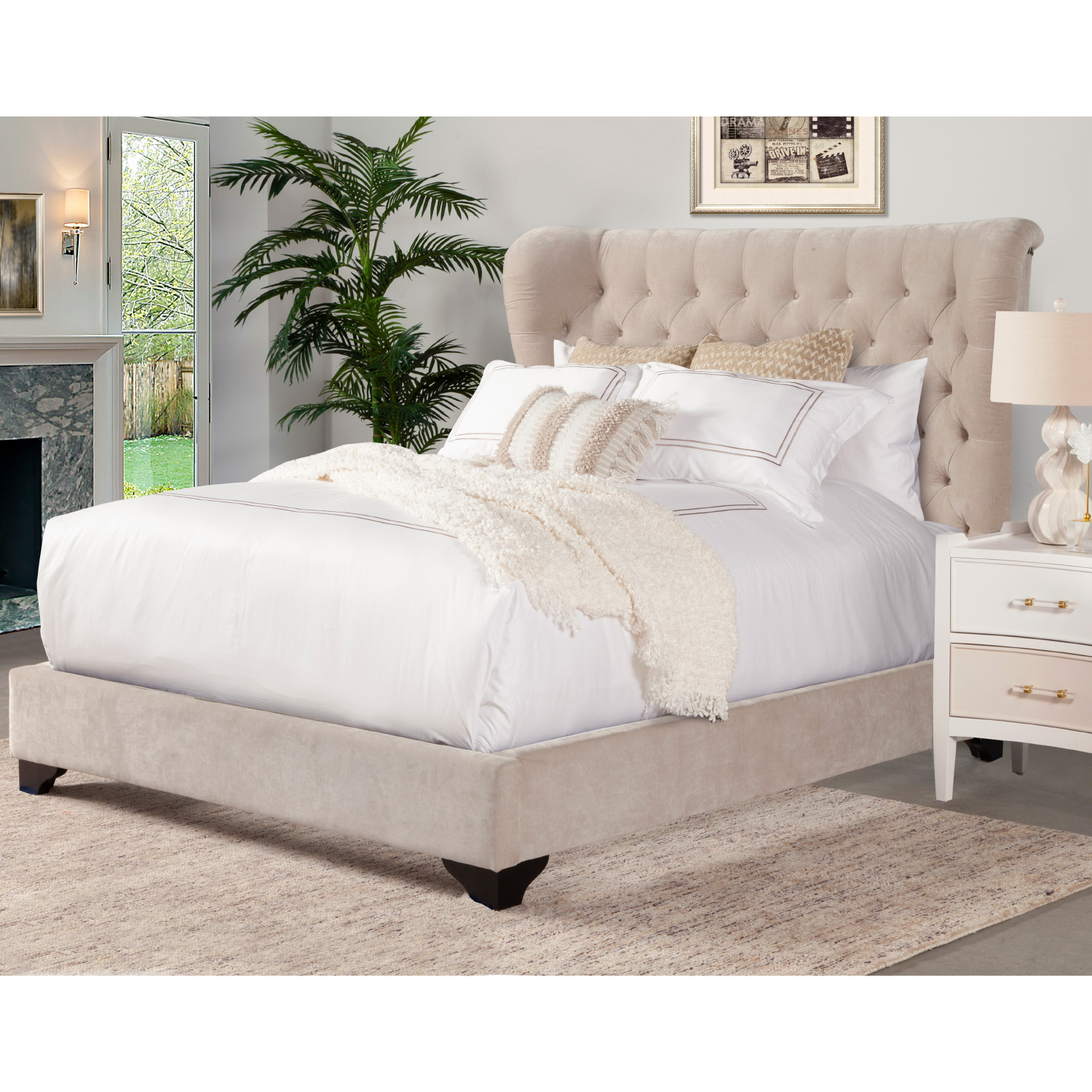 Parker House Chloe Queen Bed with Tufted Wing Headboard in Natural Fabric