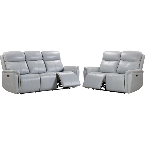 Parker House Cascade 2 Piece Power Reclining Sofa Set in Recliners in Seamist Pale Blue Grey Leather