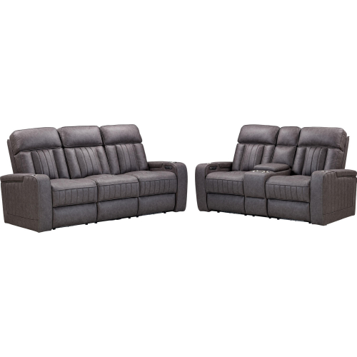 Parker House Equinox Power Reclining Sofa & Loveseat Set in Mercury Dark Grey Fabric