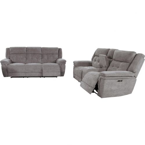 Parker House Richland Power Reclining Sofa & Loveseat Set in Bristol Grey Fabric