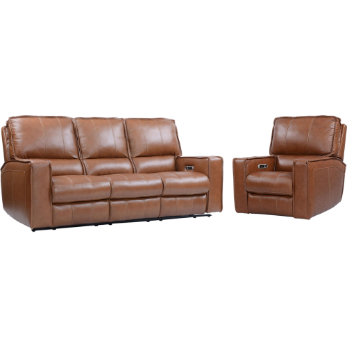 Parker House Rockford Power Reclining Sofa & Recliner Set in Saddle Brown Top Grain Leather