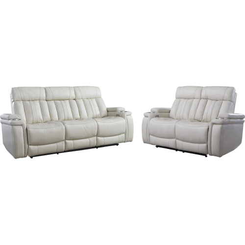 Parker House Royce Power Reclining Sofa & Loveseat Set in Ivory Leatherette