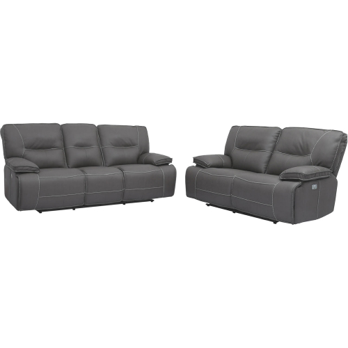 Parker House Spartacus Power Reclining Sofa & Loveseat Set in Haze Grey Leatherette