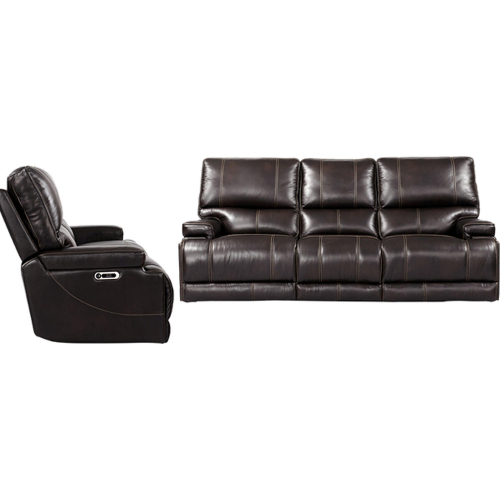 Parker House Whitman Power Cordless Reclining Sofa & Recliner Set in Coffee Brown Top Grain Leather