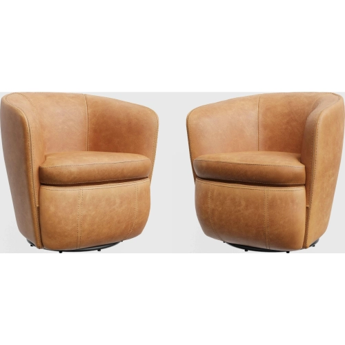 Parker House Barolo Swivel Accent Club Chair in Vintage Caramel Tan Brown Italian Leather (Set of 2)