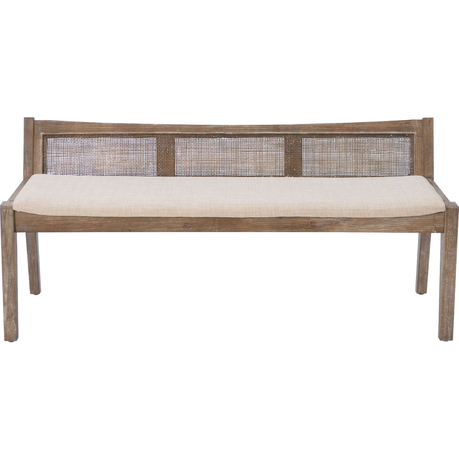 Powell Bauer Bench in Brown Wood, Cane & Beige Fabric