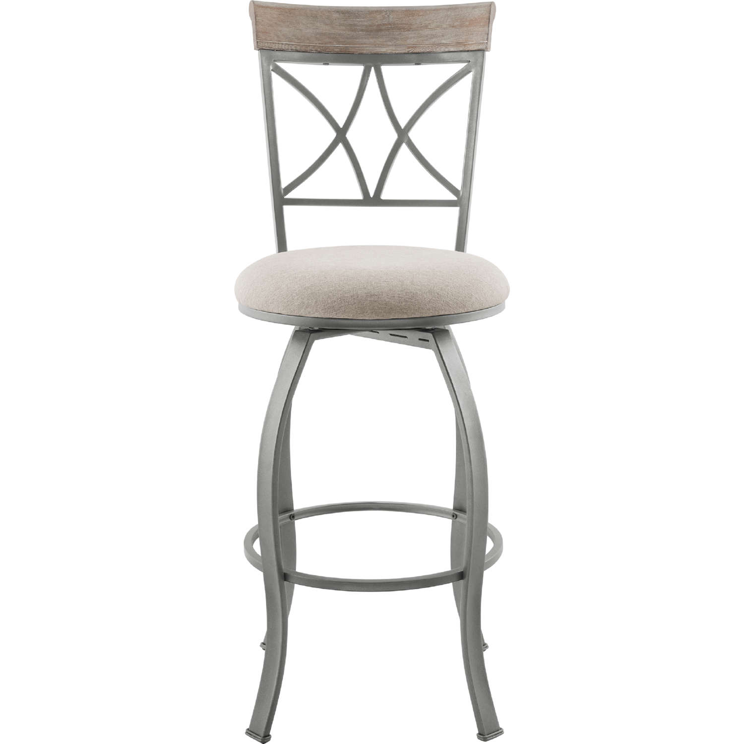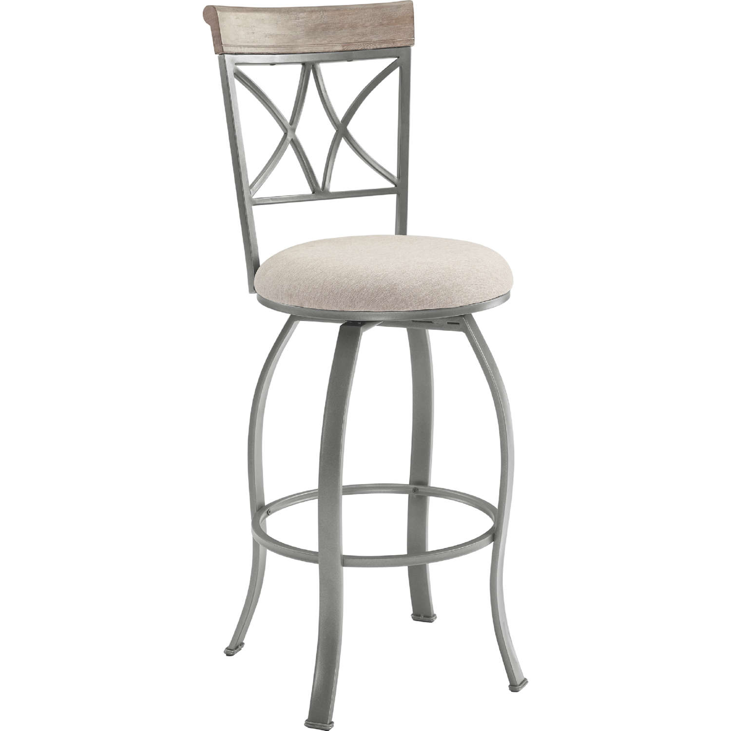 Powell D1481D21BSP Hamilton Swivel Bar Stool Pewter Metal Wood Grey Fabric