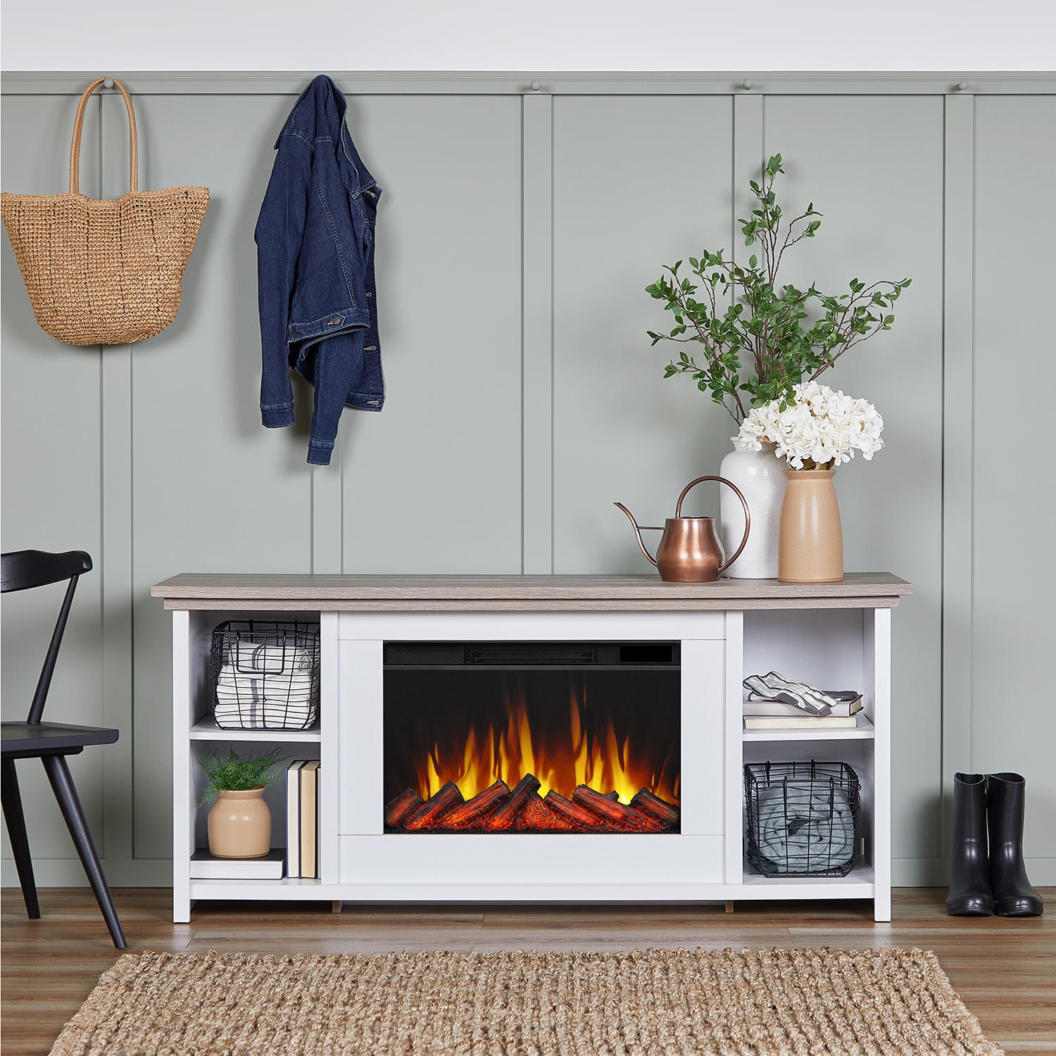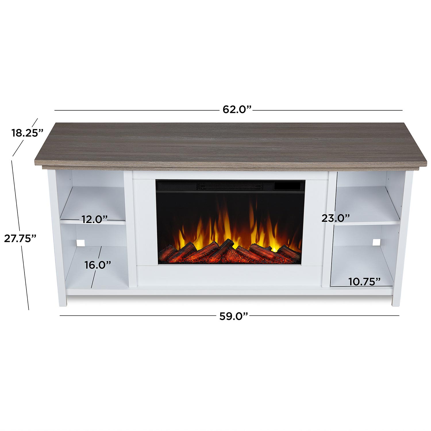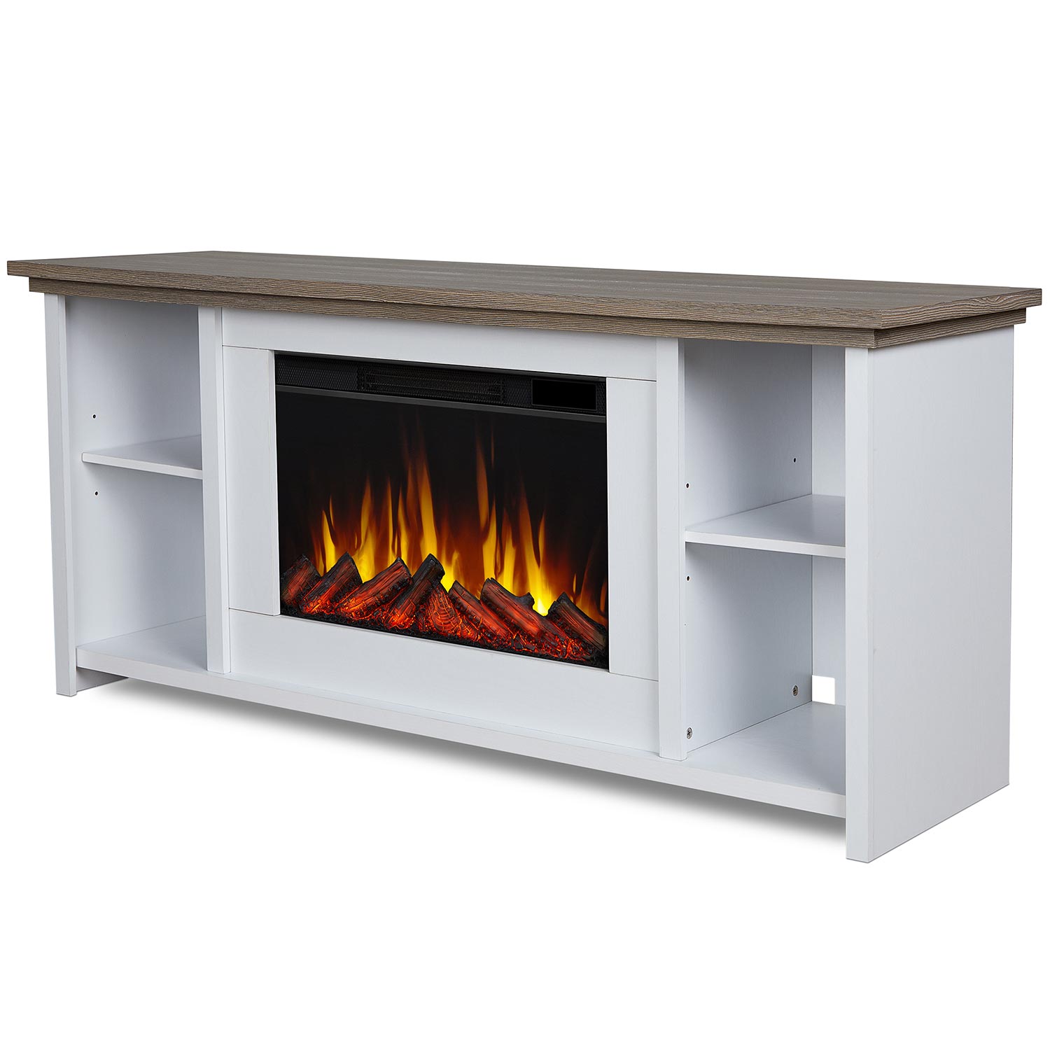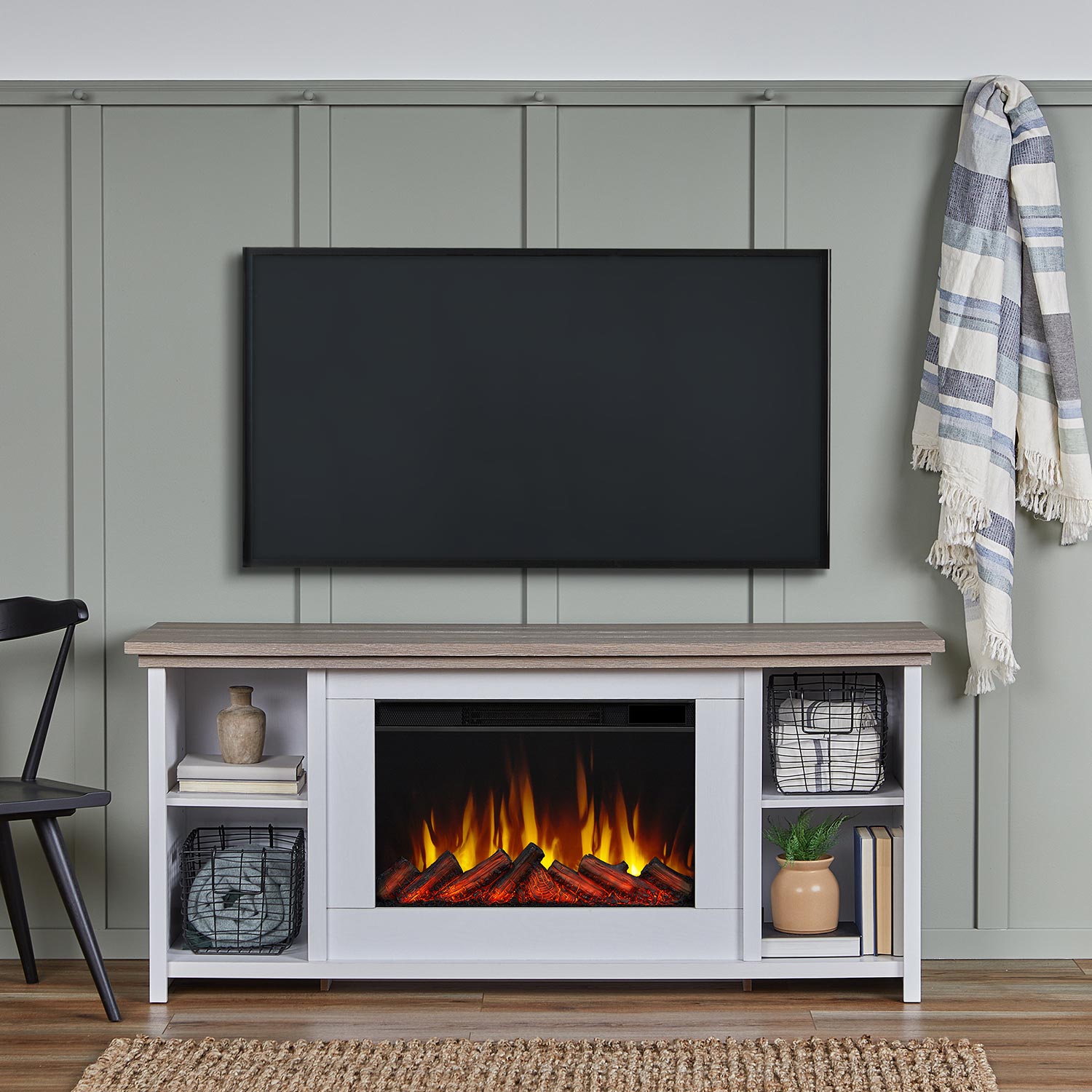 Real Flame Tramore 62" Slim TV Stand with Electric Fireplace in White & Wood