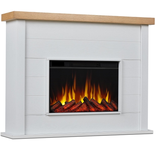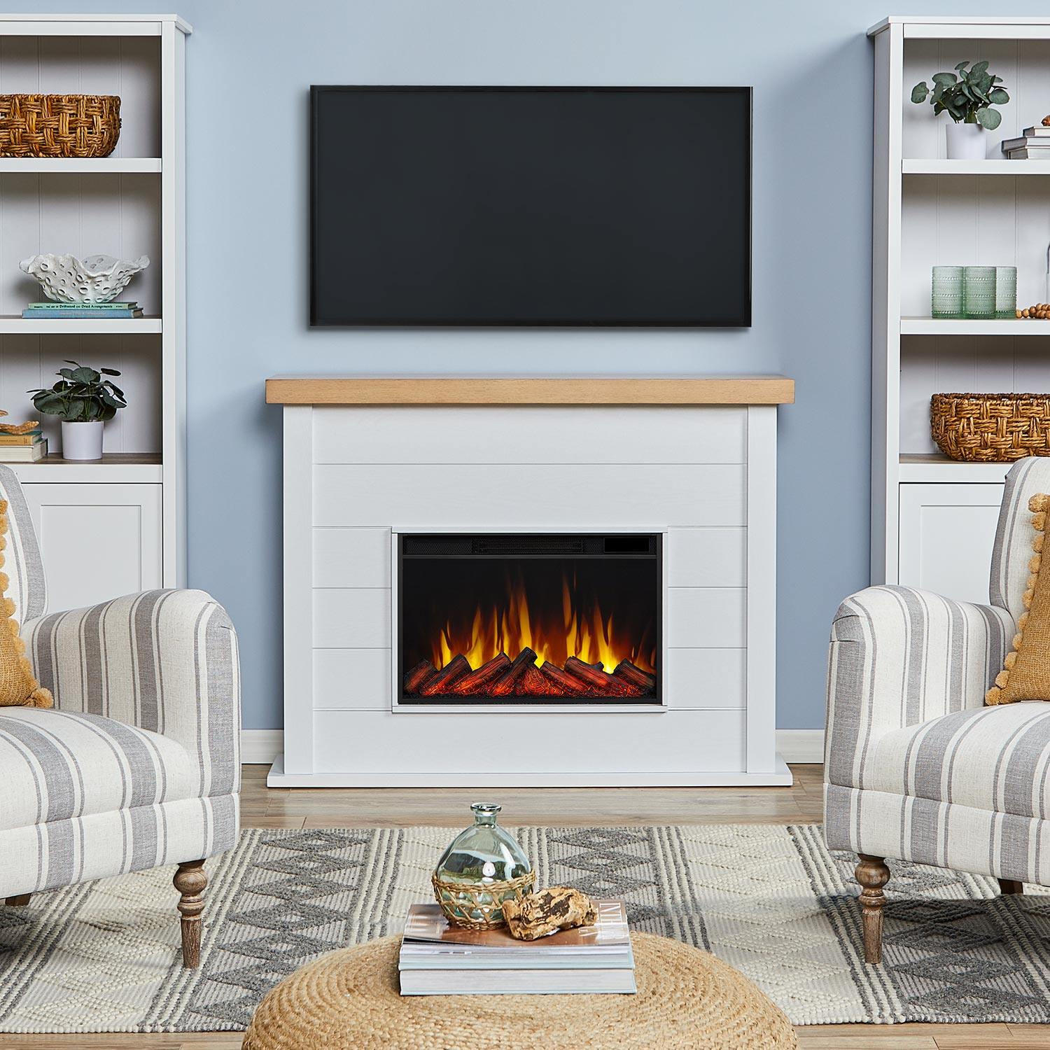 Real Flame Marshall 49" Slim Electric Fireplace in White Shiplap & Oak Veneer