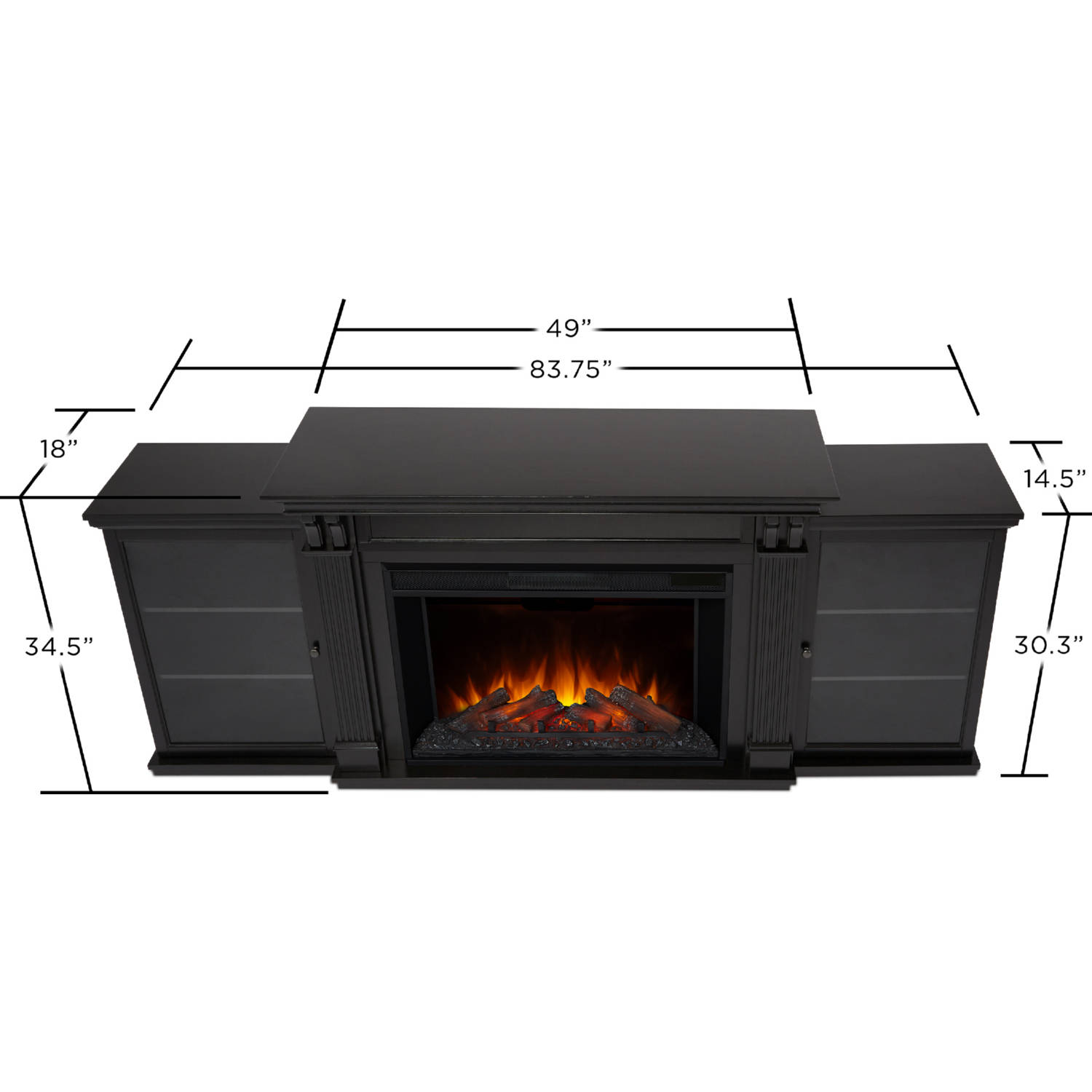 Real Flame 8720E-BLK Tracey Grand 83" TV Stand Ventless Electric Fireplace Black