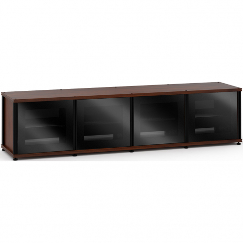 Salamander Designs Synergy 247 Quad Width 87" AV Cabinet TV Stand in Walnut, Glass Doors & Black Frame