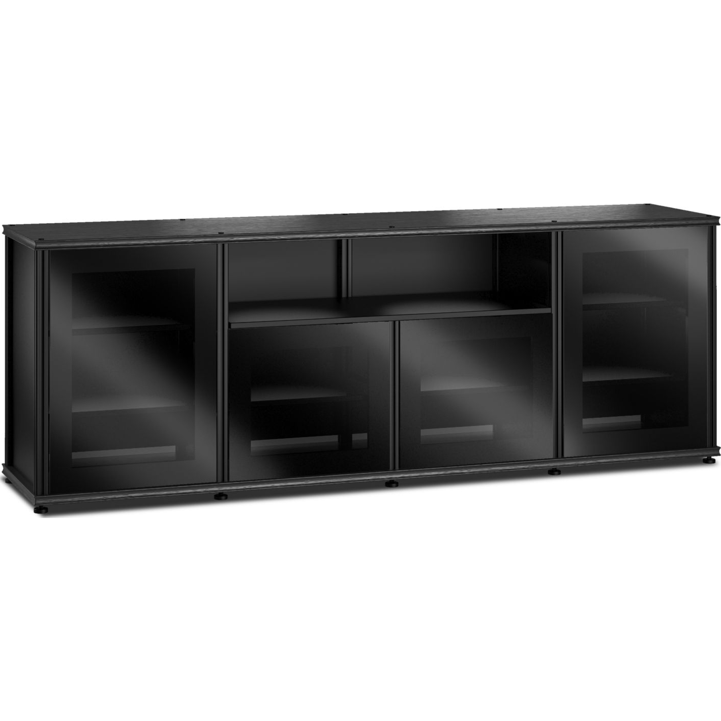 Salamander Designs Synergy 345 Quad Width 87" AV Cabinet TV Stand in Black Oak, Glass Doors & Black Frame