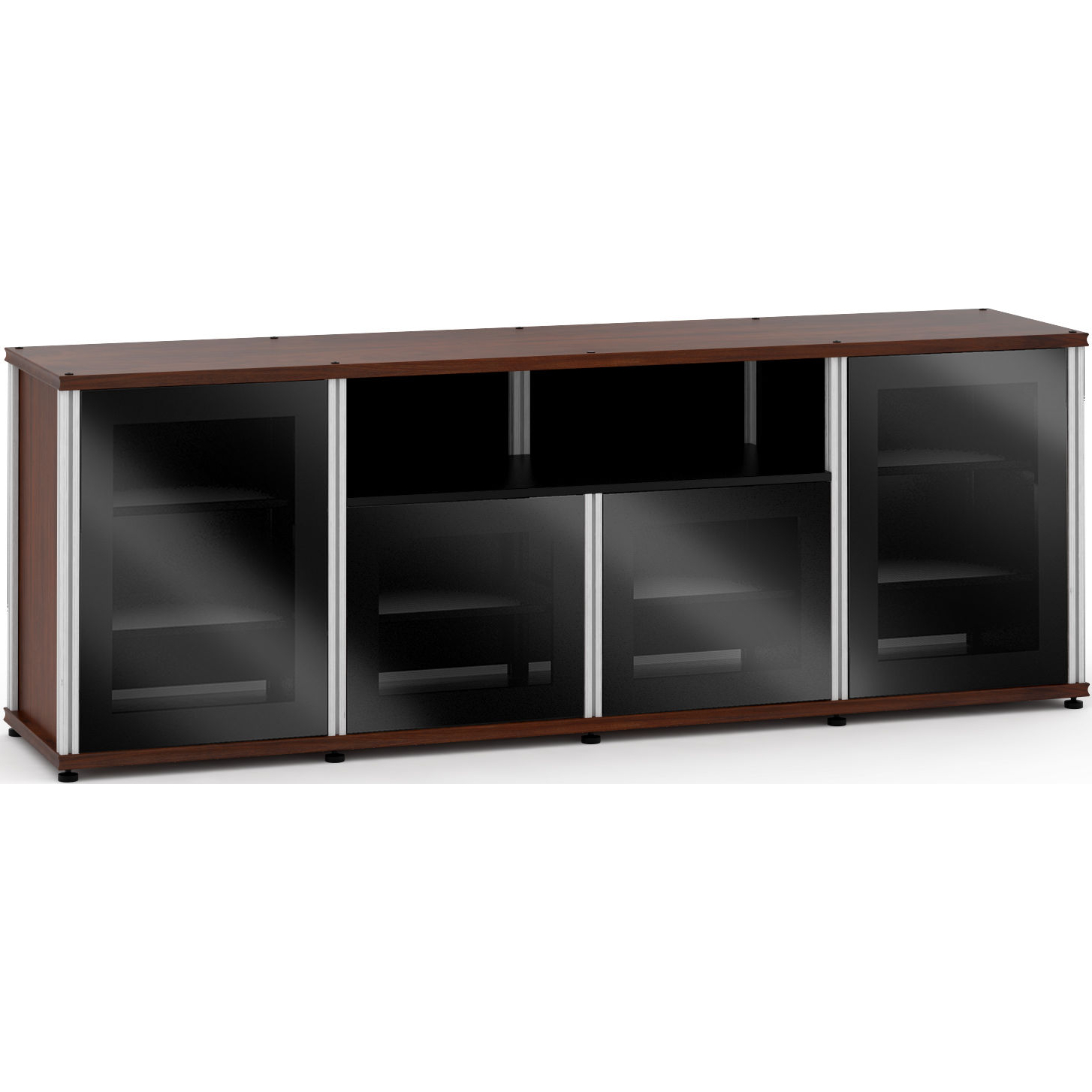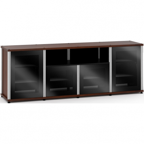 Salamander Designs Synergy 345 Quad Width 87" AV Cabinet TV Stand in Walnut, Glass Doors & Aluminum Frame