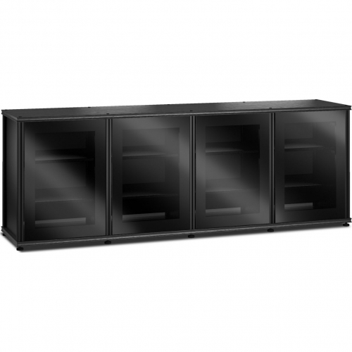 This is a tall and wide cabinet with four doors, so it will hold plenty of gear and will accommodate the largest of TVs. The unit comes with 8 fully adjustable black shelves, and includes a removable black rear panel that has been sized to allow cables to pass over and/or underneath it.
