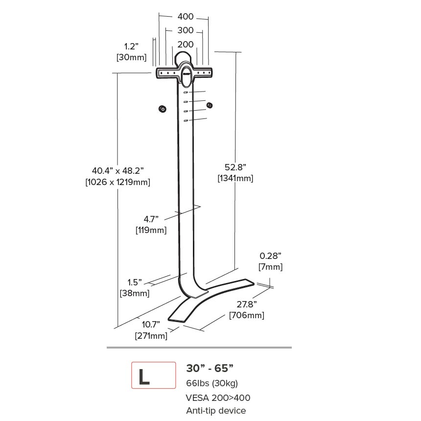 • Holds most TVs 30" to 65", maximum weight of 66 lbs. (30 kg)