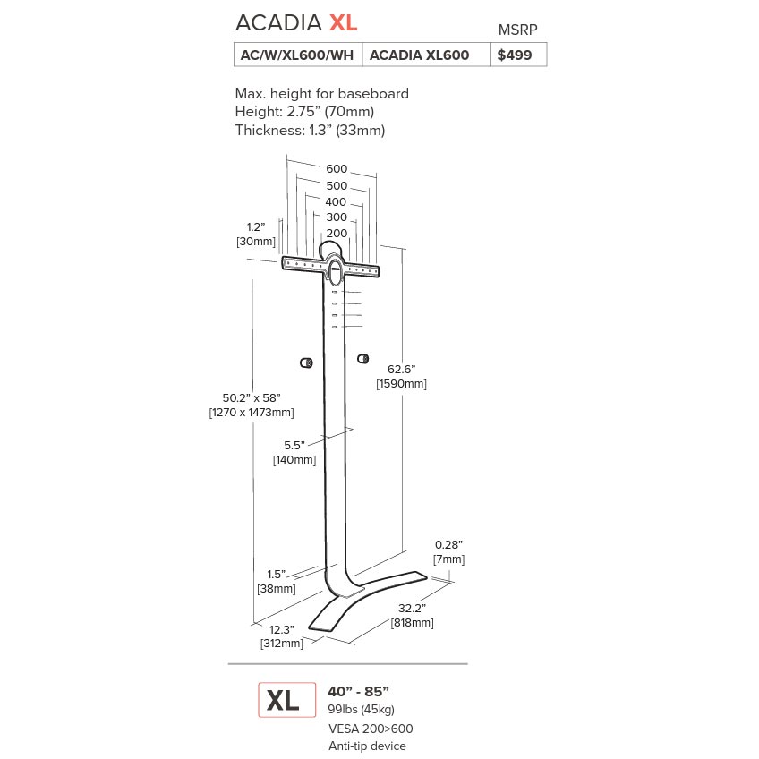 Salamander Designs AC/W/XL600/WH Acadia X Large Wall TV Stand White Steel