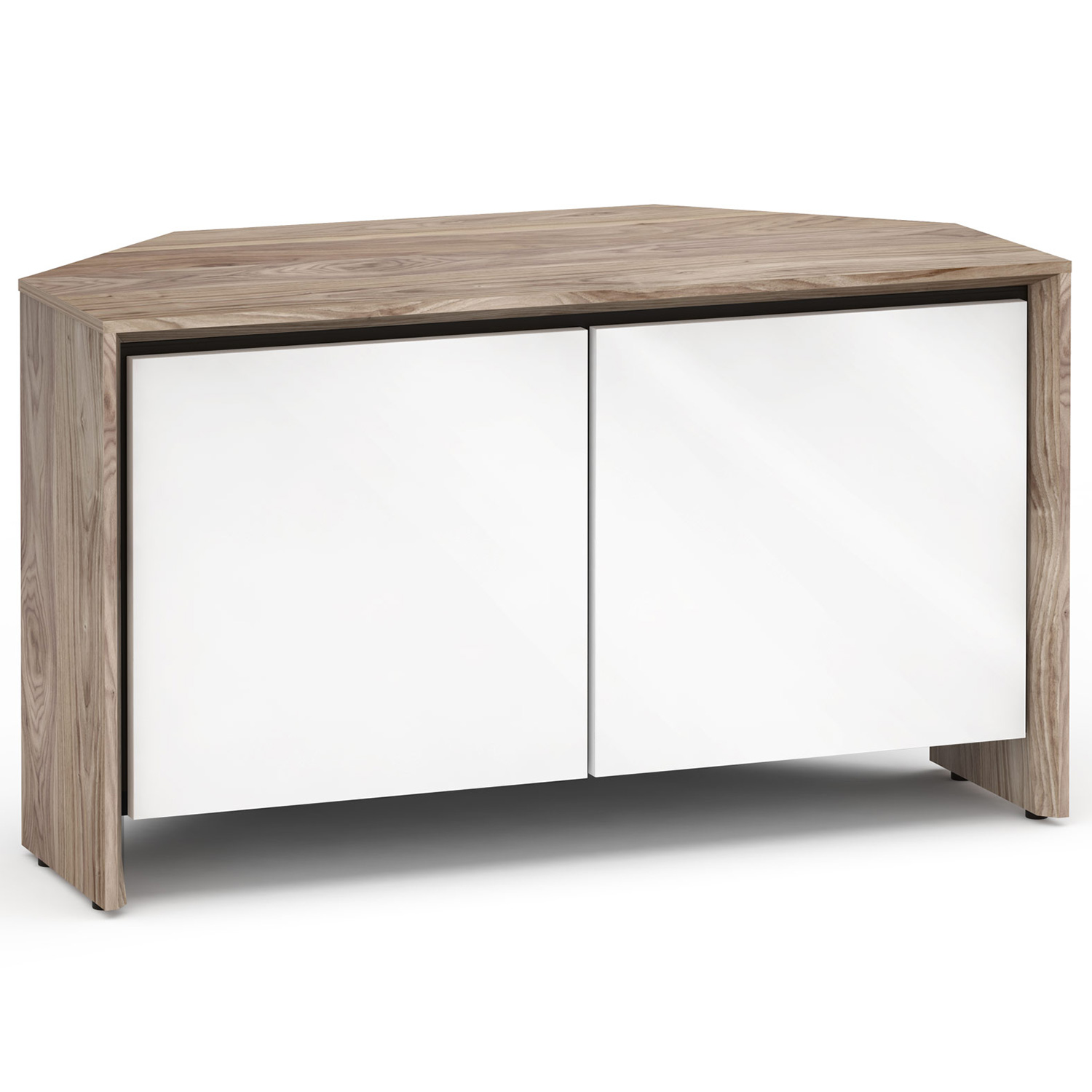 Salamander Designs Barcelona 221CR 45" Corner TV Stand AV Cabinet in Natural Walnut with Gloss White Doors