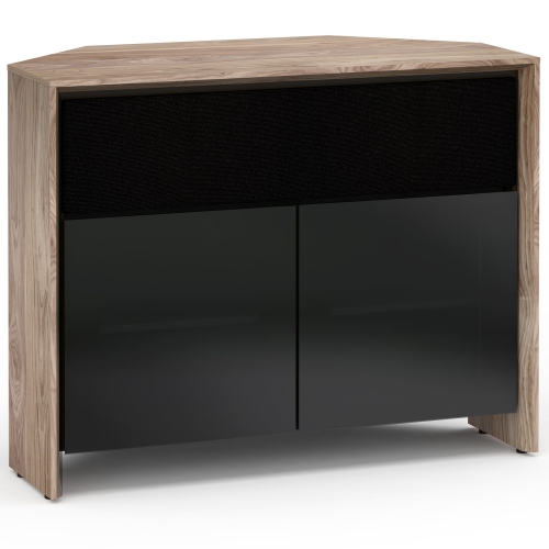 Salamander Designs Barcelona 329CR 45" Corner TV Stand AV Cabinet in Natural Walnut with Black Glass