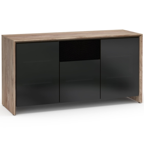 Salamander Designs Barcelona 336 65" TV Stand AV Cabinet in Natural Walnut with Black Glass Doors