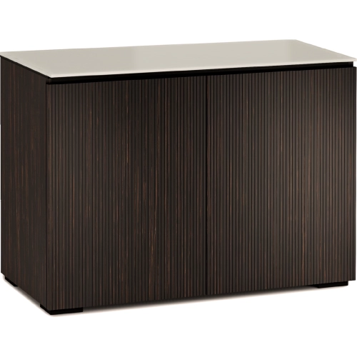 Salamander Designs Chameleon Media Cabinets in Manhattan style combine elegance with the strength of a unique, robust C-frame aluminum chassis and is made in the USA in our factory. Our expertly crafted panels attach to this durable frame, offering endless customization to match your taste, electronics and needs. While these Cabinets look like luxury furniture, they also provide unmatched versatility with bolt-on entertainment options and accessories - designed specifically for you. Crafted with meticulous attention to detail, the Manhattan Media Cabinet features a vertical, stripe textured pattern in an Ebony Maro finish with a soft matte taupe, etched glass top with a non-reflective surface.