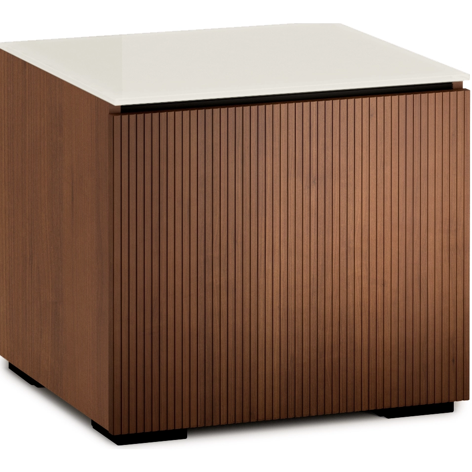 Salamander Designs Manhattan 217 AV Cabinet in Medium Walnut with Matte Taupe Glass Top
