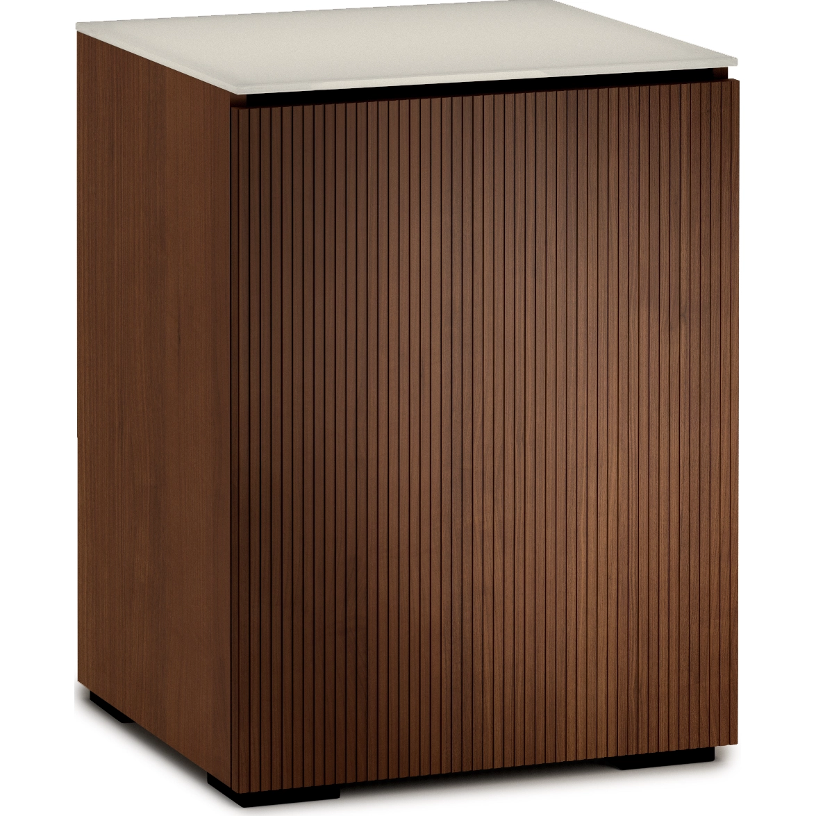 Salamander Designs Manhattan 317 AV Cabinet in Medium Walnut with Matte Taupe Glass Top