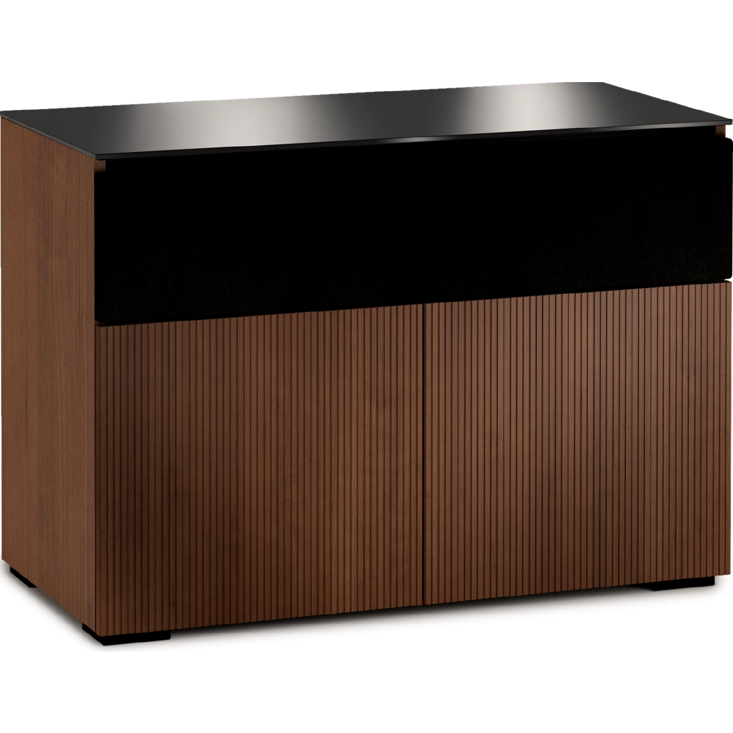 Salamander Designs Manhattan 329 44" TV Stand AV Cabinet in Medium Walnut with Black Glass Top