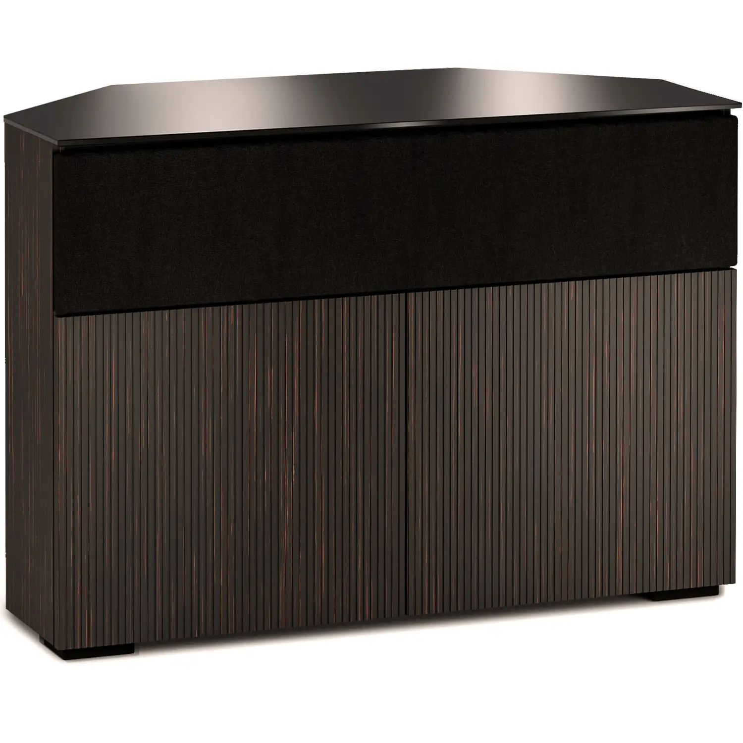 Salamander Designs Manhattan 329 Corner TV Stand AV Cabinet in Maro Ebony with Black Glass Top