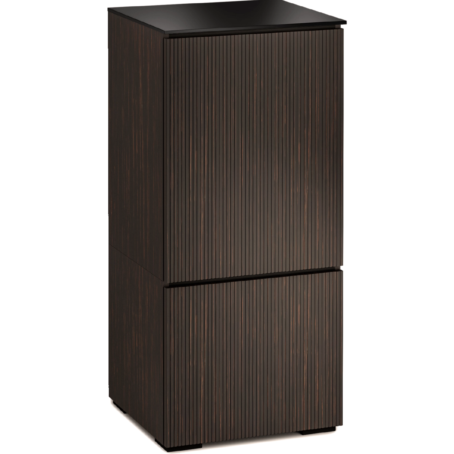 Salamander Designs Chameleon Media Cabinets in Manhattan style combine elegance with the strength of a unique, robust C-frame aluminum chassis and is made in the USA in our factory. Our expertly crafted panels attach to this durable frame, offering endless customization to match your taste, electronics and needs. While these Cabinets look like luxury furniture, they also provide unmatched versatility with bolt-on entertainment options and accessories - designed specifically for you. Crafted with meticulous attention to detail, the Manhattan Media Cabinet features a vertical, stripe textured pattern in an Ebony Maro finish with a sleek black glass.