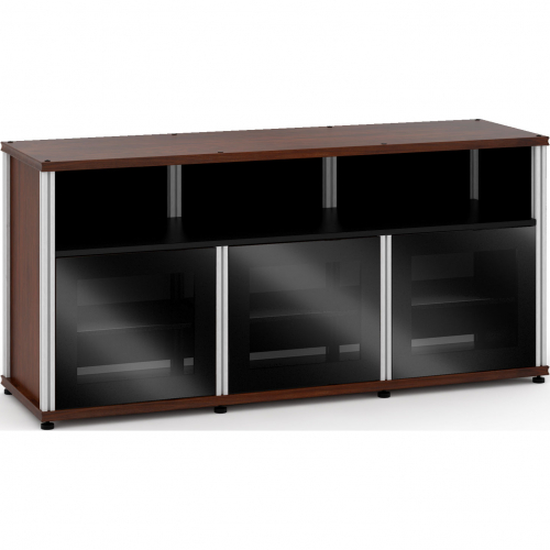 Salamander Designs SB339W/BG/A Synergy 339 Triple Width 65" AV Cabinet TV Stand Walnut Glass Doors Aluminum Frame