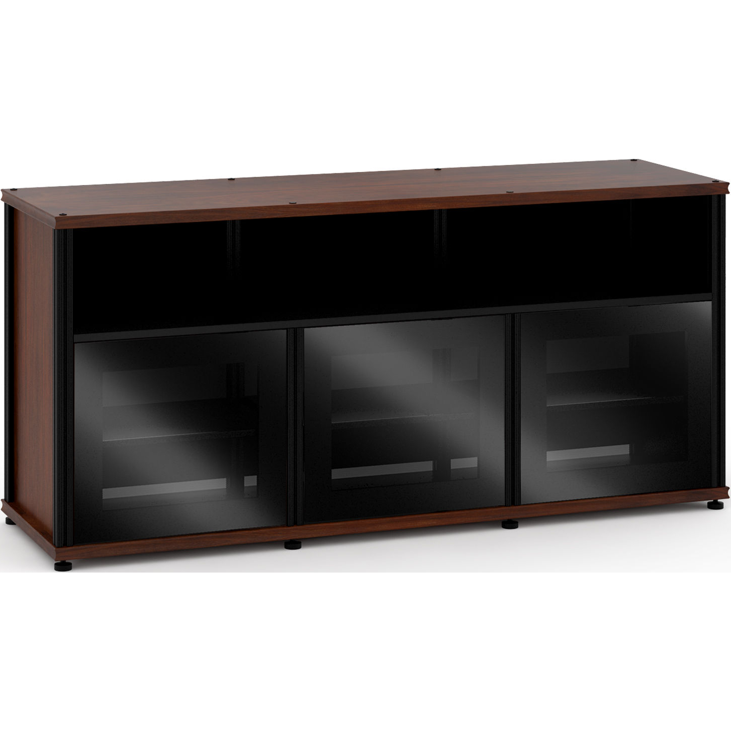 Salamander Designs SB339W/BG/B Synergy 339 Triple Width 65" AV Cabinet TV Stand Walnut Glass Doors Black Frame