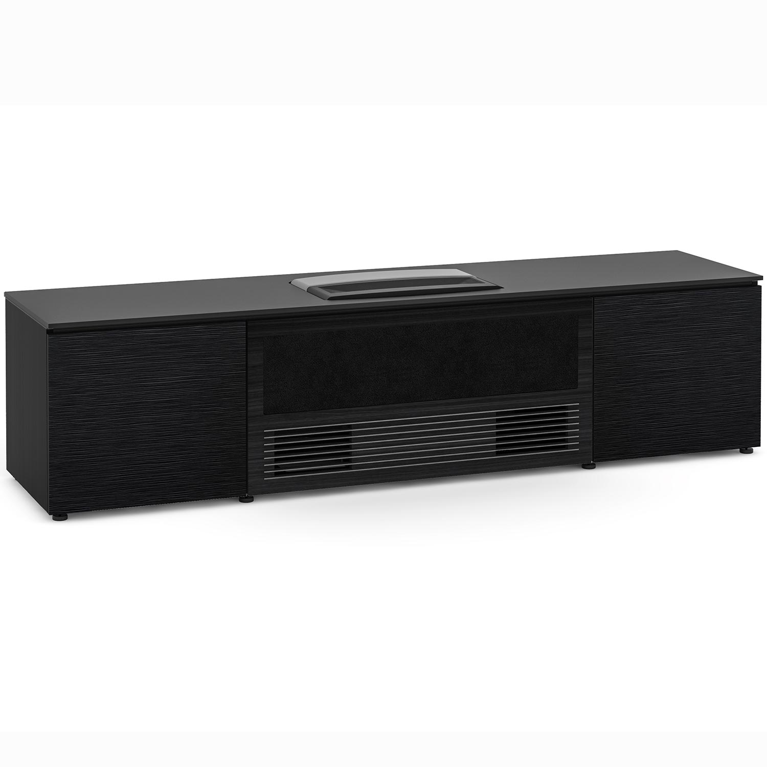 Salamander Designs Chicago 245 86" Cabinet in Textured Black & Black Oak for Hisense UST L5G Projector