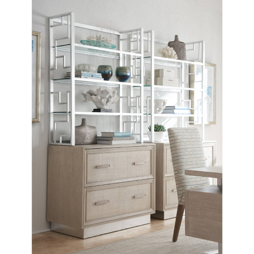 Sligh 324-441-324-450 Wheaton File Chest Hutch Brushed Oak Veneer Raffia Silver Leaf