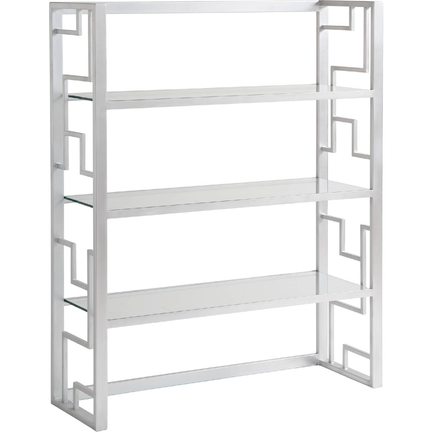 • Open back hutch has a metal frame and decorative fretwork in silver leaf finish
