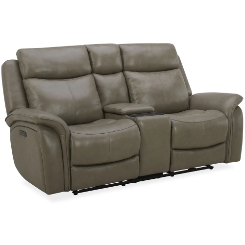 Southern Motion Grant Power Headrest Reclining Console Loveseat in Cobblestone Gray Top Grain Leather
