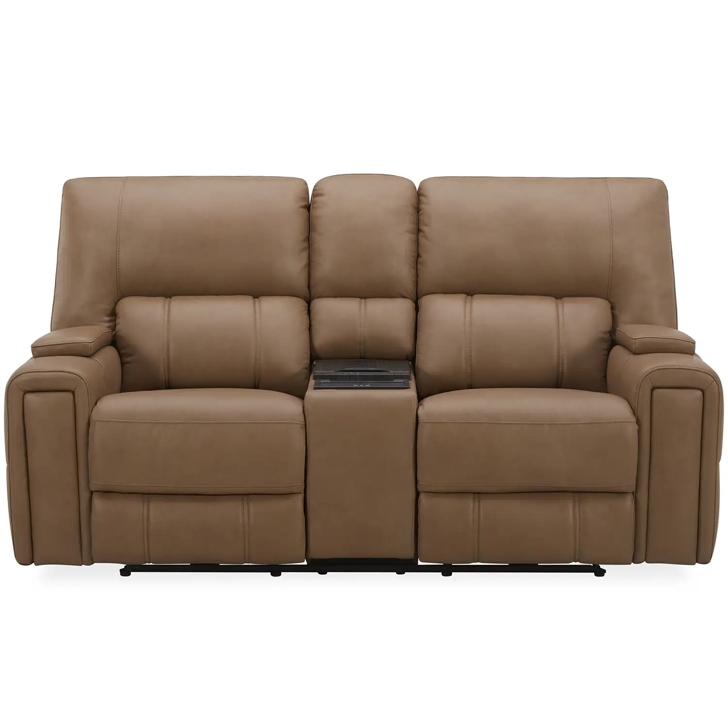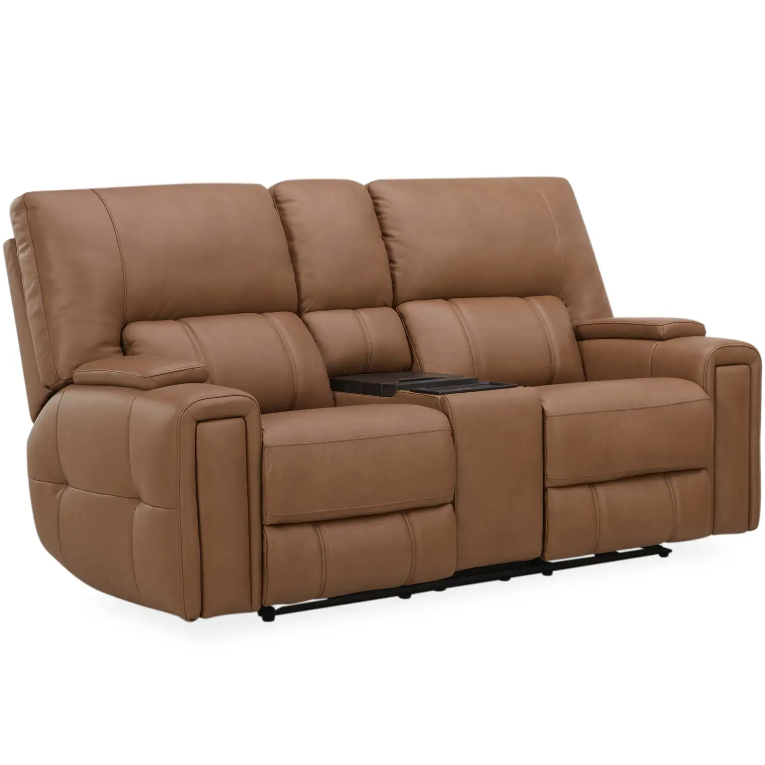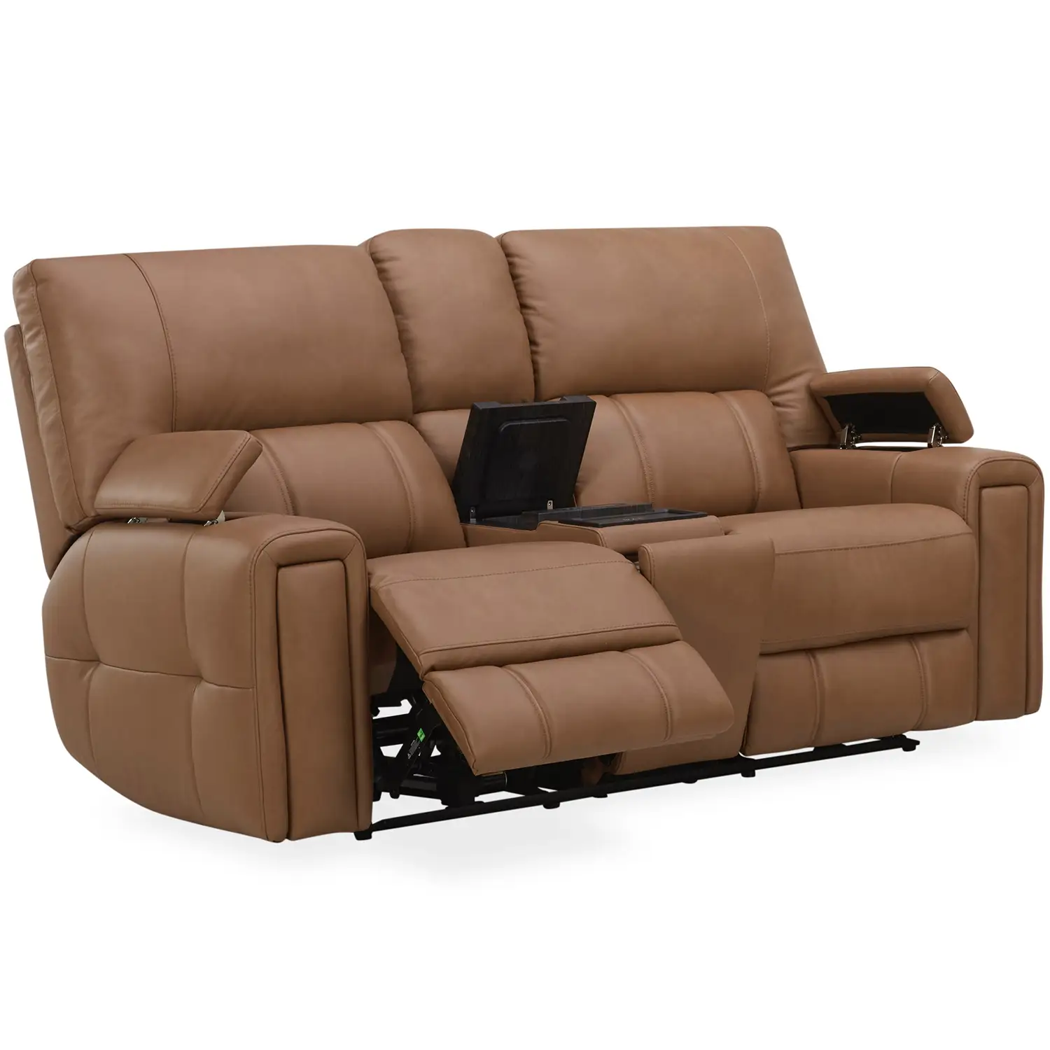 Southern Motion Hudson Triple Power Reclining Console Loveseat with Bluetooth in Butternut Brown Top Grain Leather