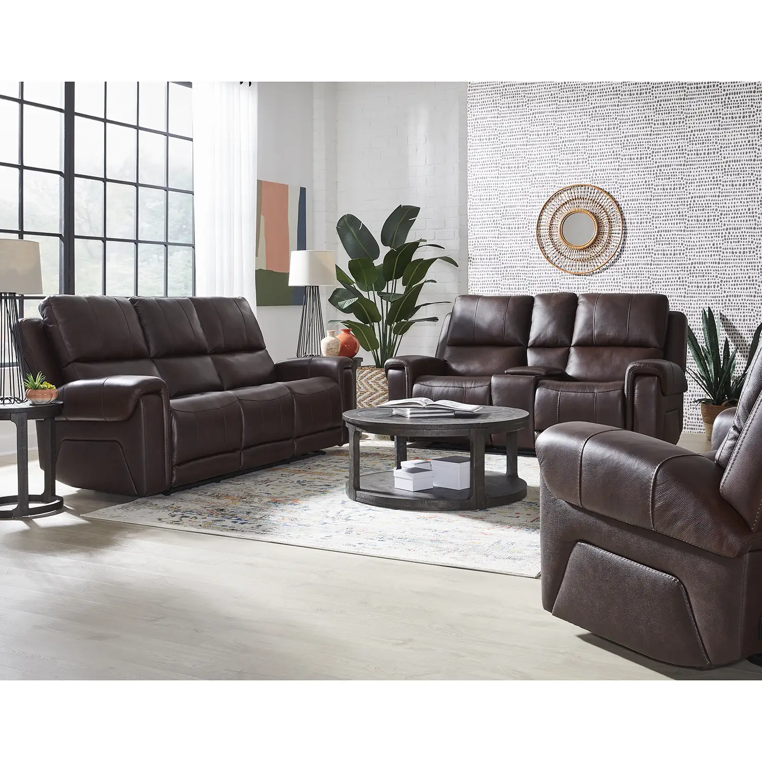Southern Motion Burton Triple Power Reclining Console Loveseat with Bluetooth in Brown Top Grain Leather