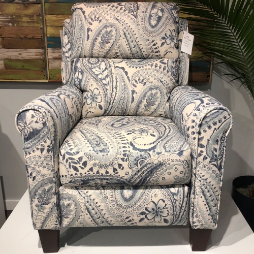 Southern Motion Pep Talk Power Headrest Hi-Leg Recliner in Paisley Blue Fabric