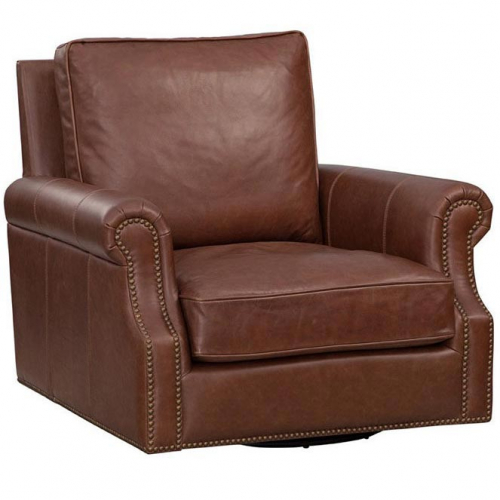 Spectra Home Furnishings Shelley Swivel Chair - CHB Shelley Swivel Accent Chair Chaps Havana Brown Leather