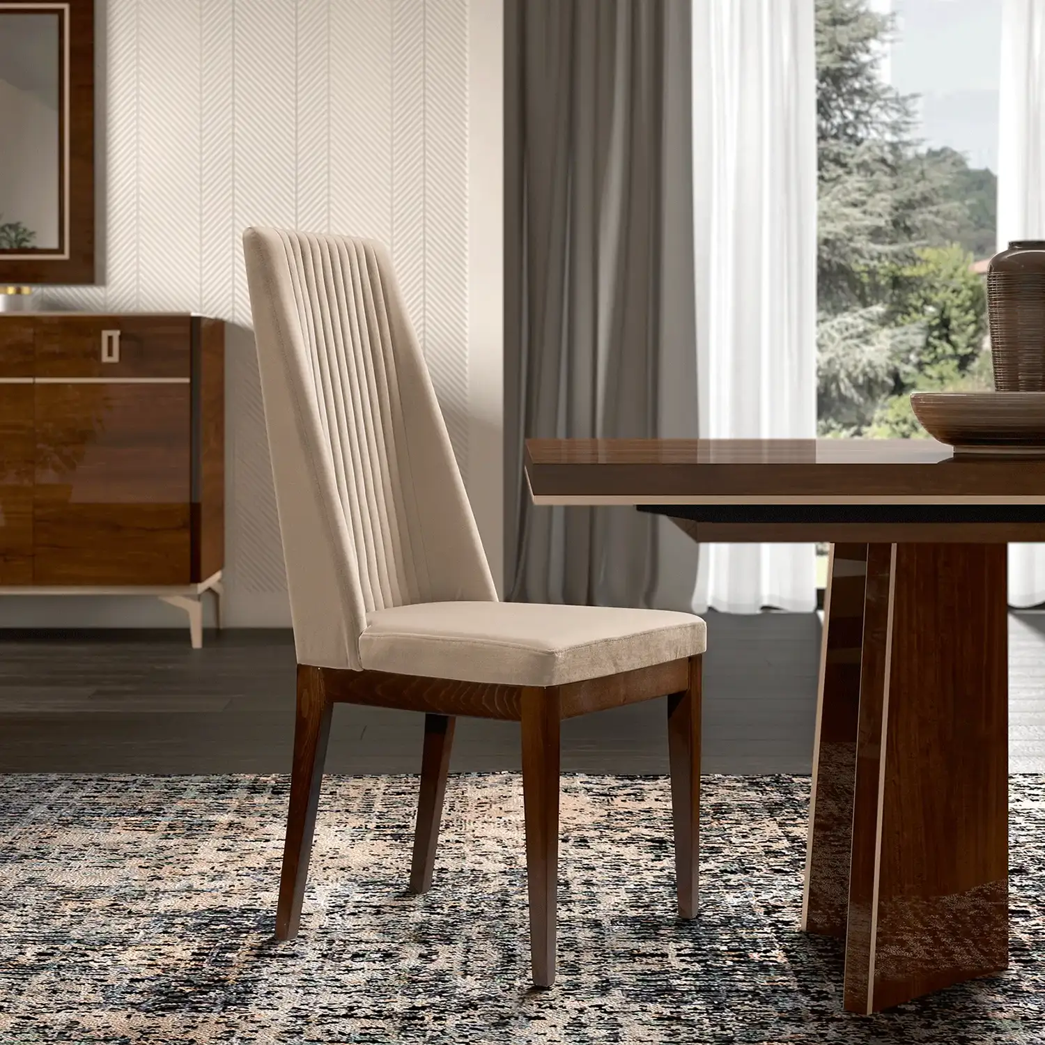 Status Italy EVACHAIR Eva Dining Chair in Beige Velvet Walnut Finish (Set of 2)