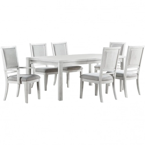 Sunset Trading AG-638-096-901067P Dover 7 Piece 60 to 96" Extension Dining Set Off White Fabric Cerused White Wood