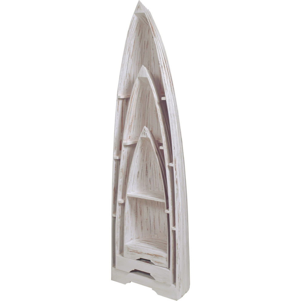 • Set Includes: three boat shaped shelving units