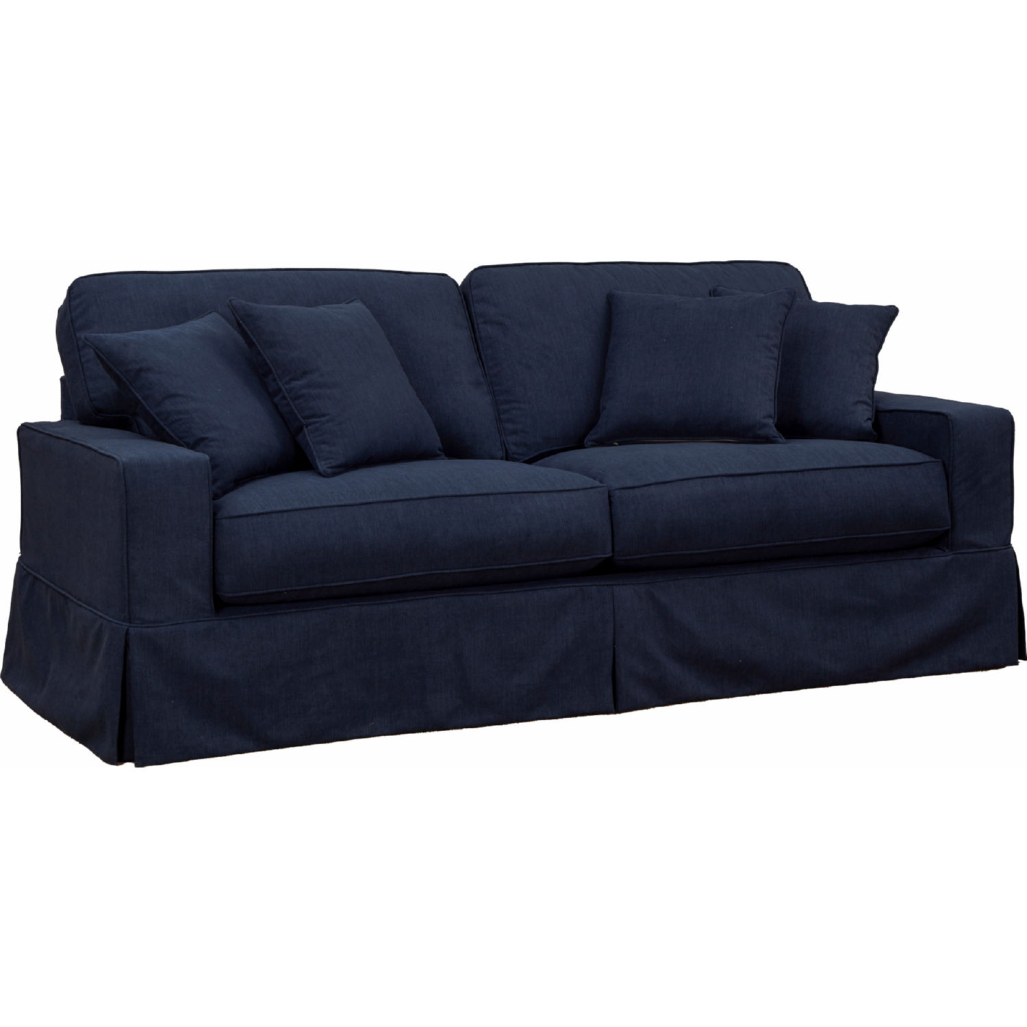 Sunset Trading Americana Box Cushion Slipcovered Sofa in Navy Blue Performance Fabric