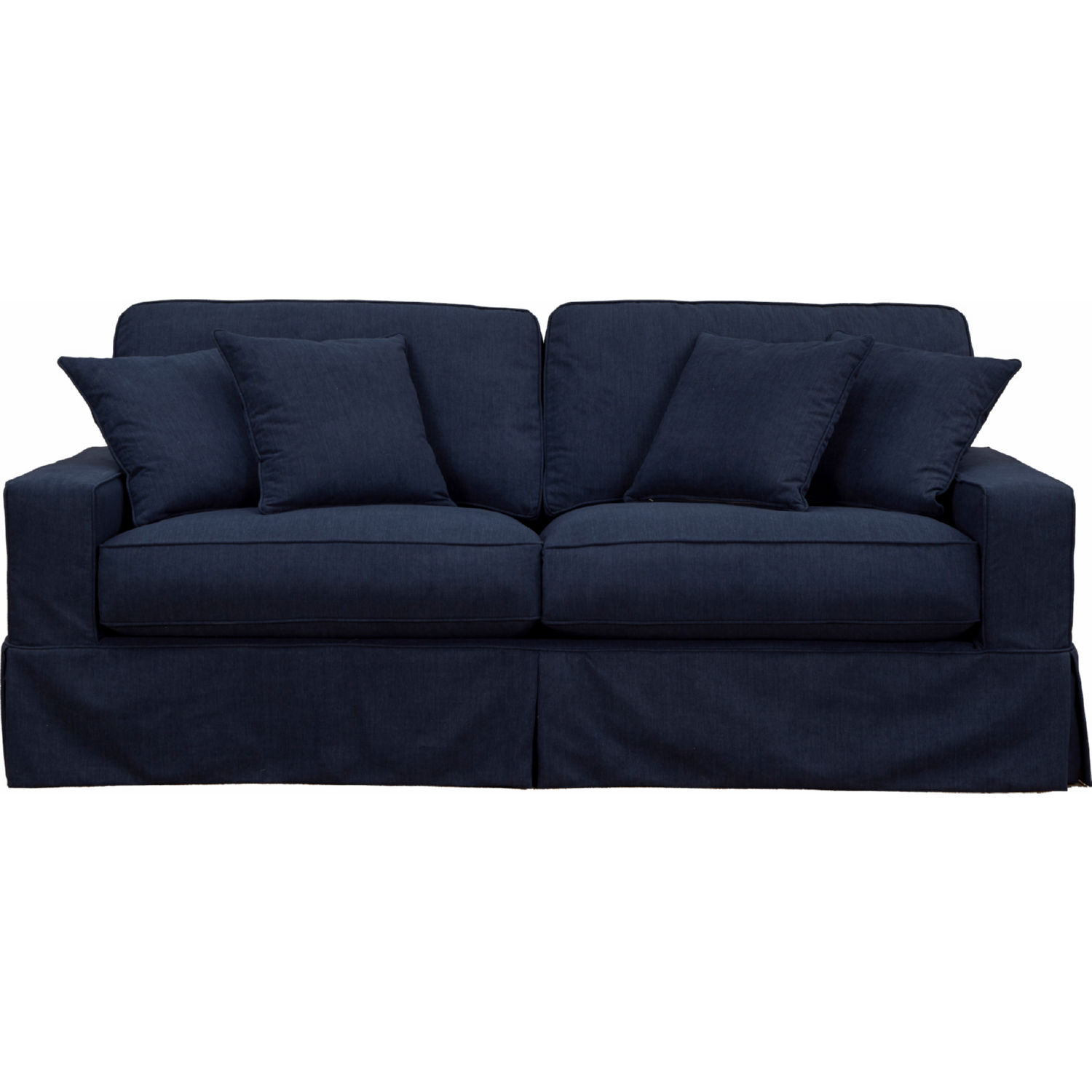 Sunset Trading SU-108500-391049 Americana Box Cushion Slipcovered Sofa Navy Blue Performance Fabric