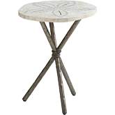 Tommy Bahama Home Rockville Round Martini Table in White Marble & Pewter Metal