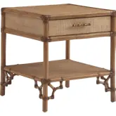Tommy Bahama Home Yellowfin Accent End Table in Burnished Bronze Metal & Capiz Shell