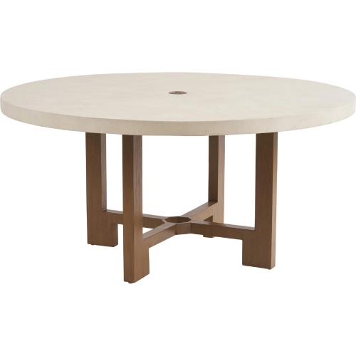Tommy Bahama Outdoor Palm Desert Outdoor 60" Round Dining Table in White Stone & Teak Look Aluminum