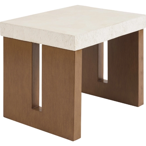 Tommy Bahama Outdoor Palm Desert Outdoor Rectangular End Table in White Stone & Teak Look Aluminum