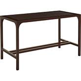 The chaise lounge offers a soft contemporary design with a hand finished aluminum frame emulates the look of English walnut. A dark mocha sling fabric material complements the finish. Removable drink tray may attach on the left or right. The inclining back is ideal for reading or resting.